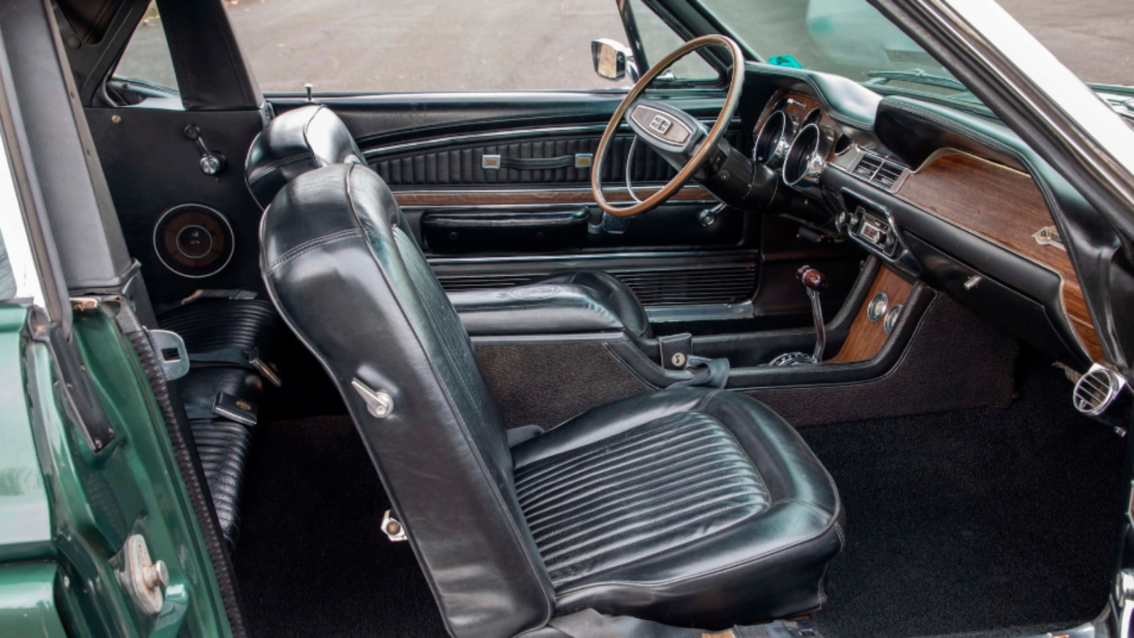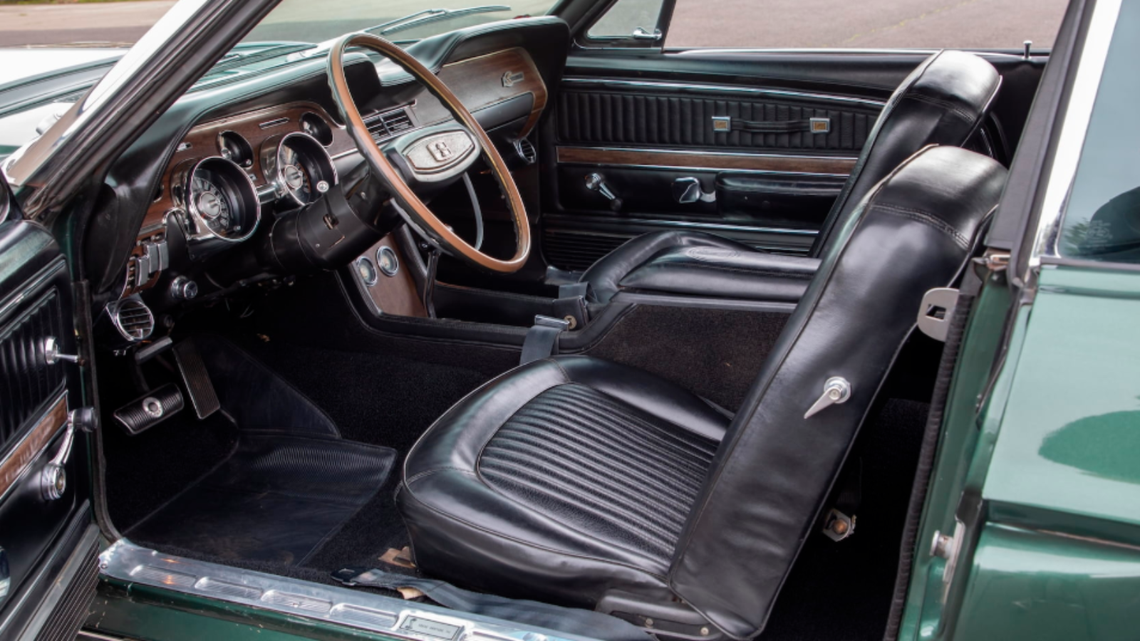 This 68' GT 500KR is an absolute beauty, it's undeniable. The Highland Green paint job goes perfectly with the black convertible roof. These two dark colors give even more contrast to the white rocker stripes.