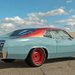 In terms of aesthetics, the classic Ford has been given a NASCAR-style two-tone color scheme. The body wears a light teal hue accented by a pearl red top portion. And the deep dish steelie wheels match the red from the roof, sorta like color-matching your T-shirt with your shoes!