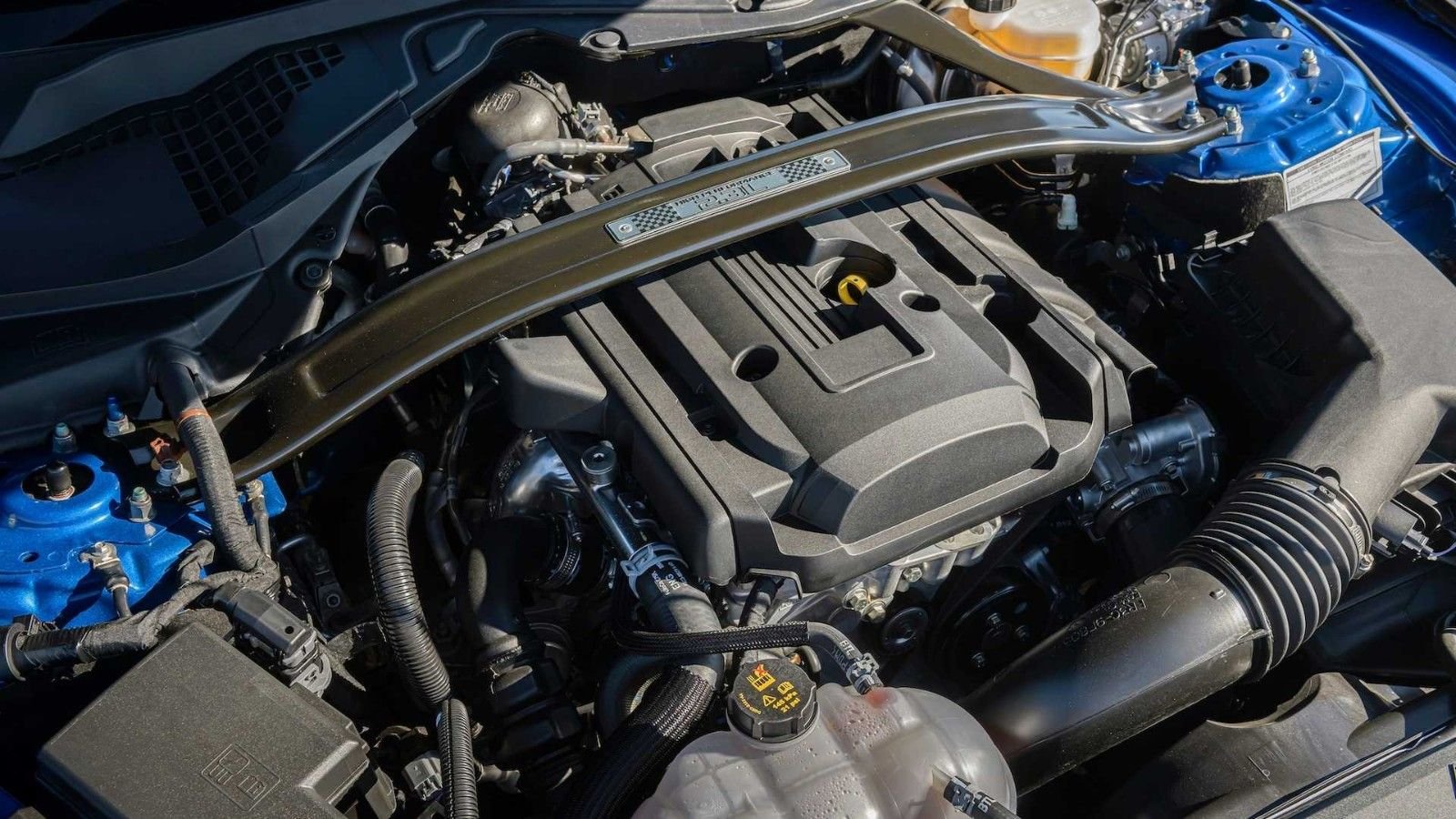 For many Mustang fans, it might still be strange to see a boost gauge in a non-Shelby car, but the boost is what defines the performance offering on this four-cylinder car. The turbine also creates a unique acoustic note in the exhaust output. With an active exhaust valving system, the Mustang 2.3 HPP sounds very much unlike what you would expect a four-cylinder engine should. It has a true high-performance car sound, at full throttle, which is exactly what Mustang owners would desire.