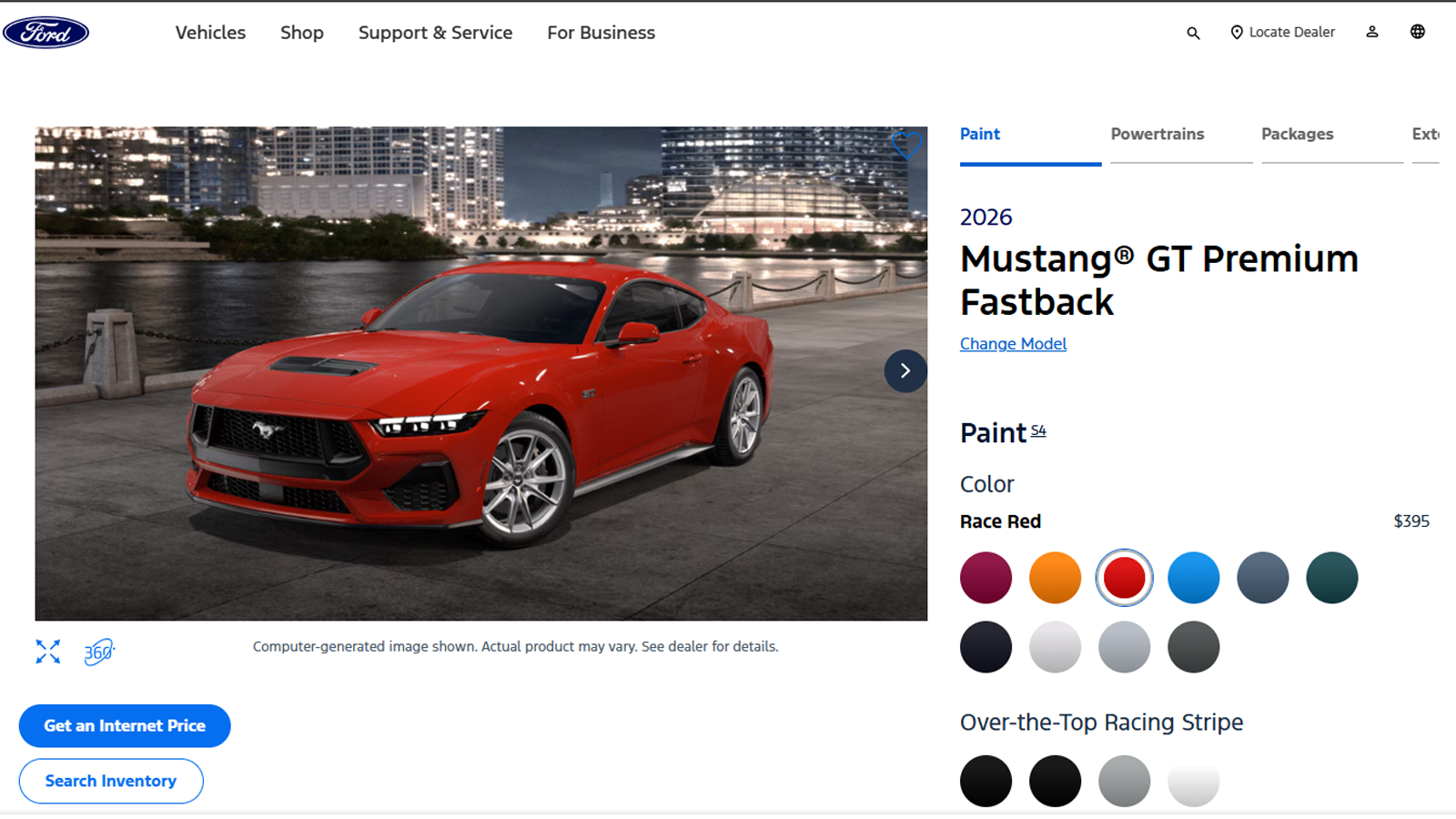 Revised suspension calibration, a more aggressive chassis setup, and available performance packages give the Dark Horse greater precision during hard cornering compared with the standard GT.