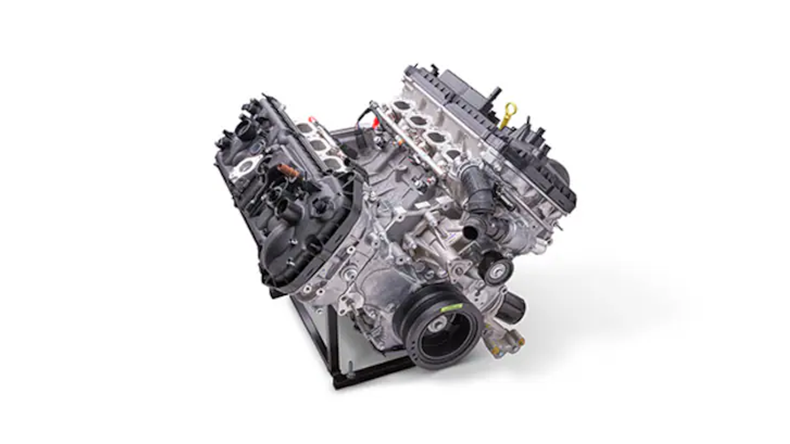 The Dark Horse engine incorporates stronger internal hardware, including forged connecting rods derived from the Shelby GT500, allowing the engine to withstand sustained high-RPM track use.