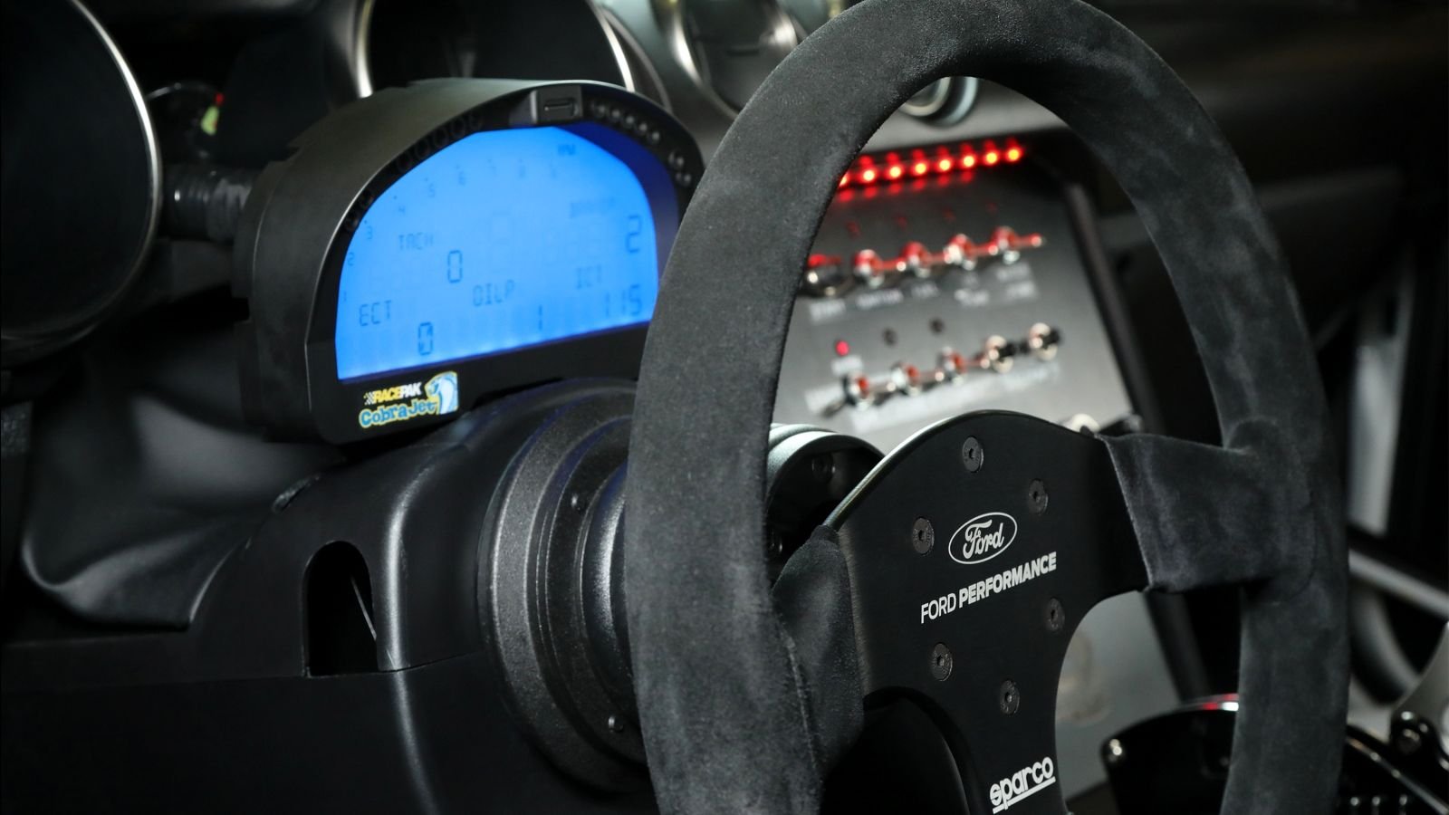 To reduce the overall weight of the 50th anniversary Mustang Cobra Jet, many of the features and components that are available in the base 2018 Mustang e.g. the front passenger and rear seats have been removed from it. Ford has also installed an NHRA-certified roll cage in it, along with FIA-rated seats.