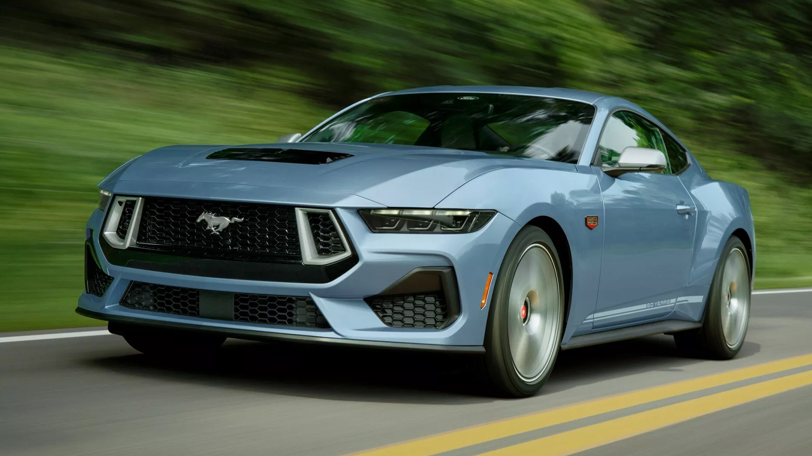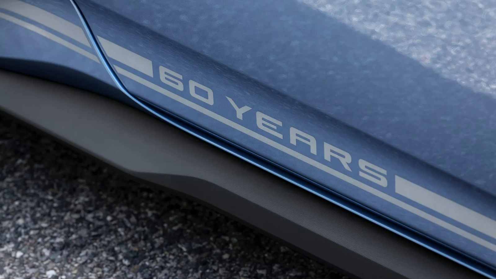 Available to order exclusively from August 16 to 19, the Brittany Blue option is offered only in the Fastback coupe body style paired with a 10-speed automatic transmission. Alongside this distinctive paint color, the model includes retro-inspired design features like a mesh grille, 20-inch dark gray five-spoke wheels with red center caps, and smoked Nite Pony headlights. Each 60th Anniversary Edition also features a serialized plaque, ensuring every vehicle is recognized as part of this special release.