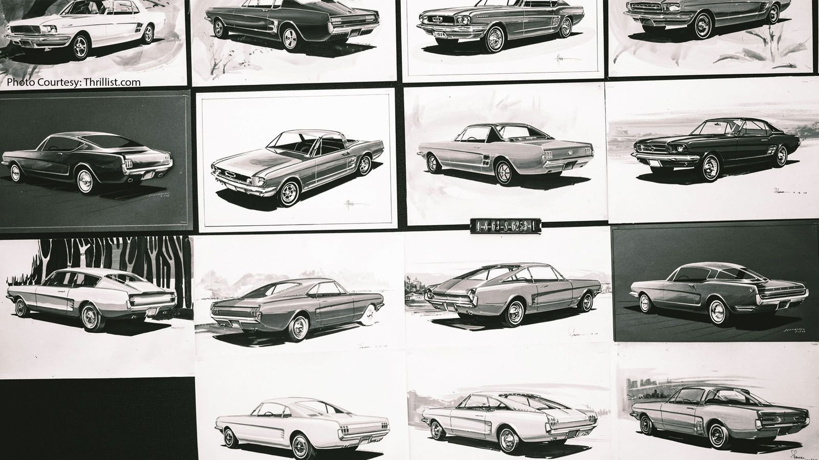 Early sketches show the falcon based Ford Mustang production car being called the Cougar. In fact, there were other names being considered for the car, like Panther and Torino, before Ford decided to go with the legendary horse. The company did exhaustive market research, however, and the Mustang name was the most popular by far.