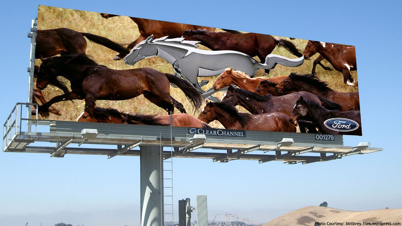This is another example of how familiar people are with the Ford Mustang logo. This is a great design by the Ford Mustang marketing team, showing how unique the Mustang is. 90% of the people can tell what this billboard is about right away, even if the Ford logo wasn't there.