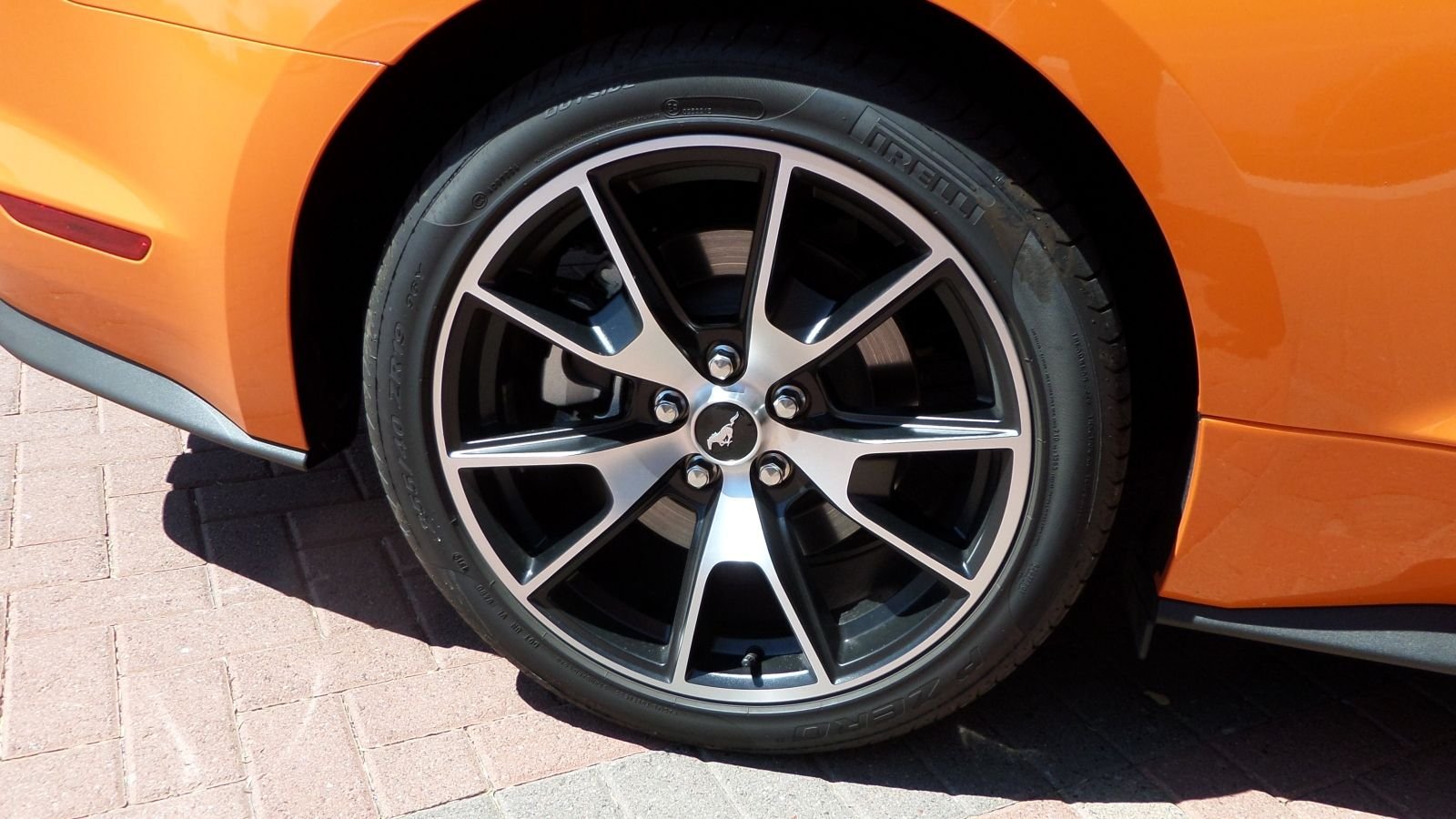 The optional wheels are 19-inch with all-season performance tires. The Mustang logo is in the center to remind onlookers what you are driving.