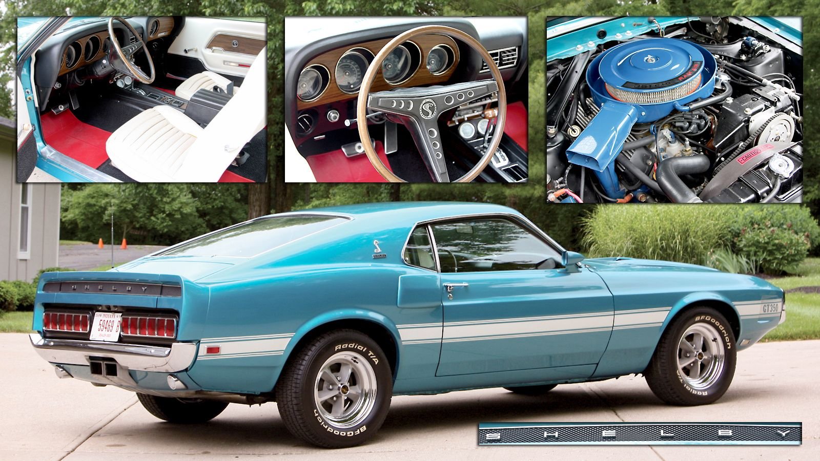 One can argue the “realness” of GT350s built after Ford brought the production in-house, but there’s no denying that Lot #3139 is just amazingly beautiful. The car is painted in rare Gulfstream Aqua which is attractive and a refreshing change from the more typical shades. That it came with the White Bucket Seat Interior (and A/C) makes it even rarer, but that’s not the kicker. That bright white upholstery you’re seeing with its born-with Sport Deck rear seat is all original! Also original is the Ram Air 351-cu.-in. 4V V8 that gives it its go-fast via a Cruise-O-Matic transmission, power steering, and front disc brakes.