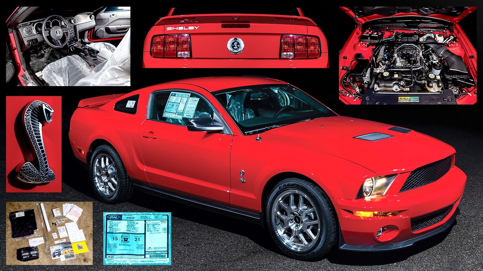 Now we can’t say for 100 percent certain, but we’re pretty sure that Lot #2033 is the only one of its kind, too. Sure, it has the same 500 horsepower supercharged 5.4-liter V8 and six-speed stick as its siblings, and most are likely to still have their factory manuals and Monroneys. Heck, it’s not even the only Torch Red stripe-delete car for 2007 and there were 28 of those! No, what makes this car special is that it lets you time-travel back 12 years and experience buying a still-in-the-wrapper, never-registered ’07 GT500. Not only just any GT500 but one with only 10.4 miles on its clock (as of its cataloging) for… around its original MSRP. [Hey, not all “instant collectible” gambles pay off. The previous owner’s pain is your gain.]