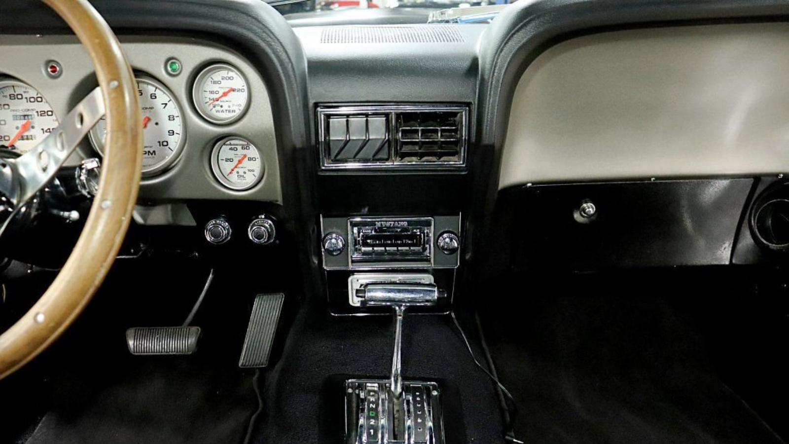 Painstaking attention was given to the restoration of this Boss 429’s interior. The car’s new digital gauges light your logistics in a cool blue light and are embedded in the car’s original dash which shows no signs of wear. The original teak steering wheel —designed in a slight semi-circle shape in the original design —is still intact. Fresh upholstery adorns the front and rear seats, which are separated by a removable center console.