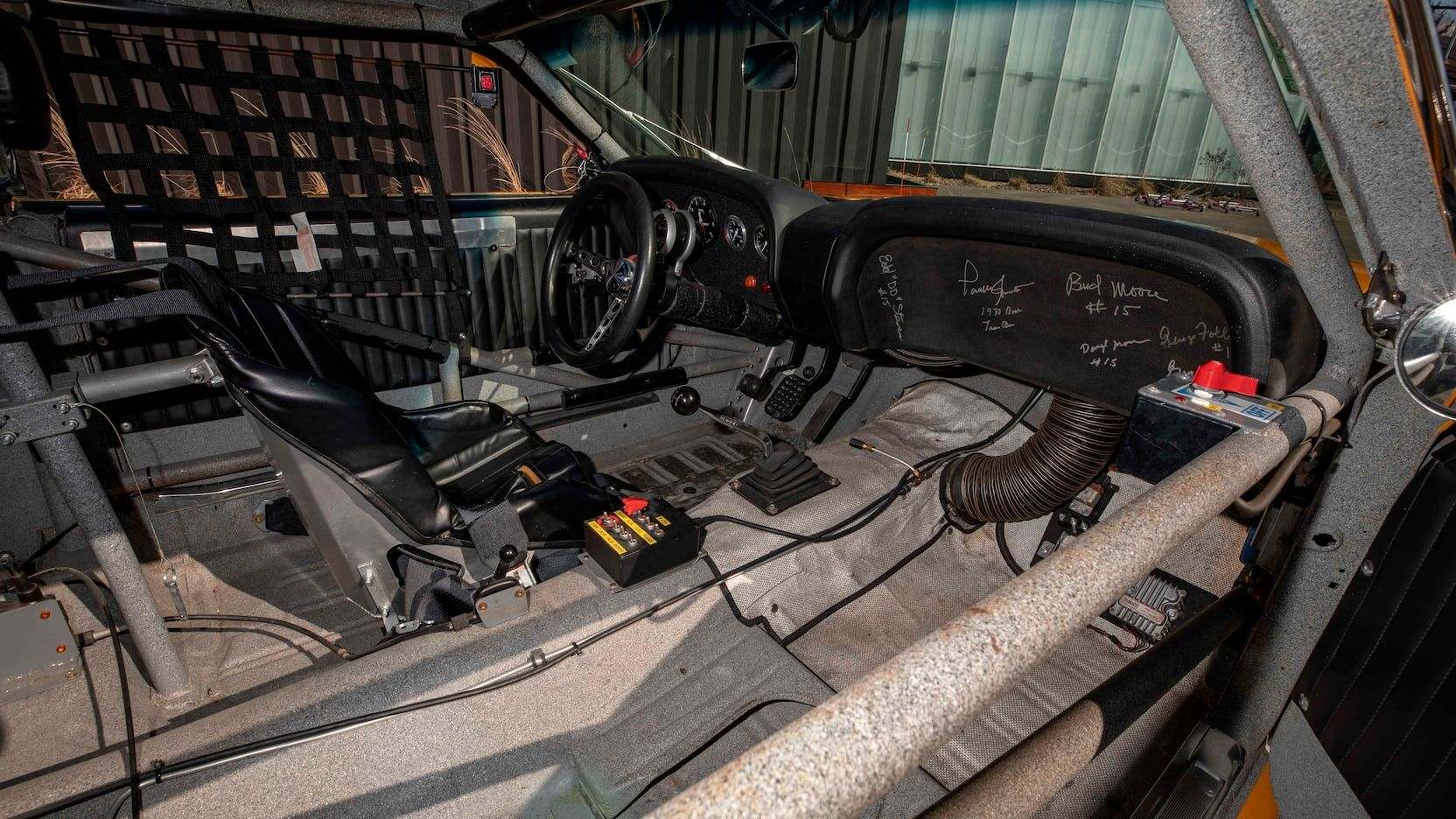 The Boss 302 racer comes with a host of documentation, including a signed letter from Bud Moore affirming its history, a signed dashboard, a pair of extra Minilite wheels, and all kinds of extra goodies.