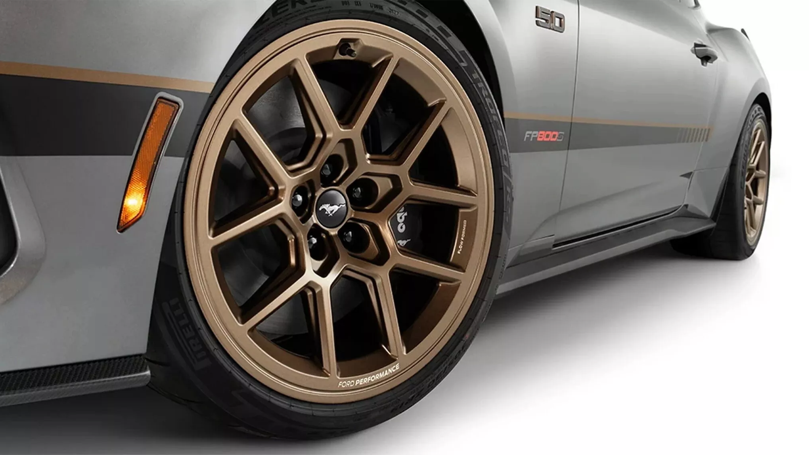 Inside, Ford avoids overusing the bronze accents and instead focuses on small specialty details. Recaro buckets with Ford Performance logos anchor the cabin, accompanied by a model-specific FP800S dash badge. The kit also includes an FP800S keychain that mirrors the interior branding.