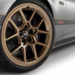 The distinguishing feature of this new variant is its bronze theme. The car receives 19-inch R1 forged wheels finished with bronze accents, matching bronze lug nuts, bronze exterior graphics, and bronze inserts inside the grille. Several functional pieces join the look: wheel spats, a front splitter, upgraded hood vents, and carbon-fiber mirror caps. A carbon fiber Dark Horse spoiler completes the package.