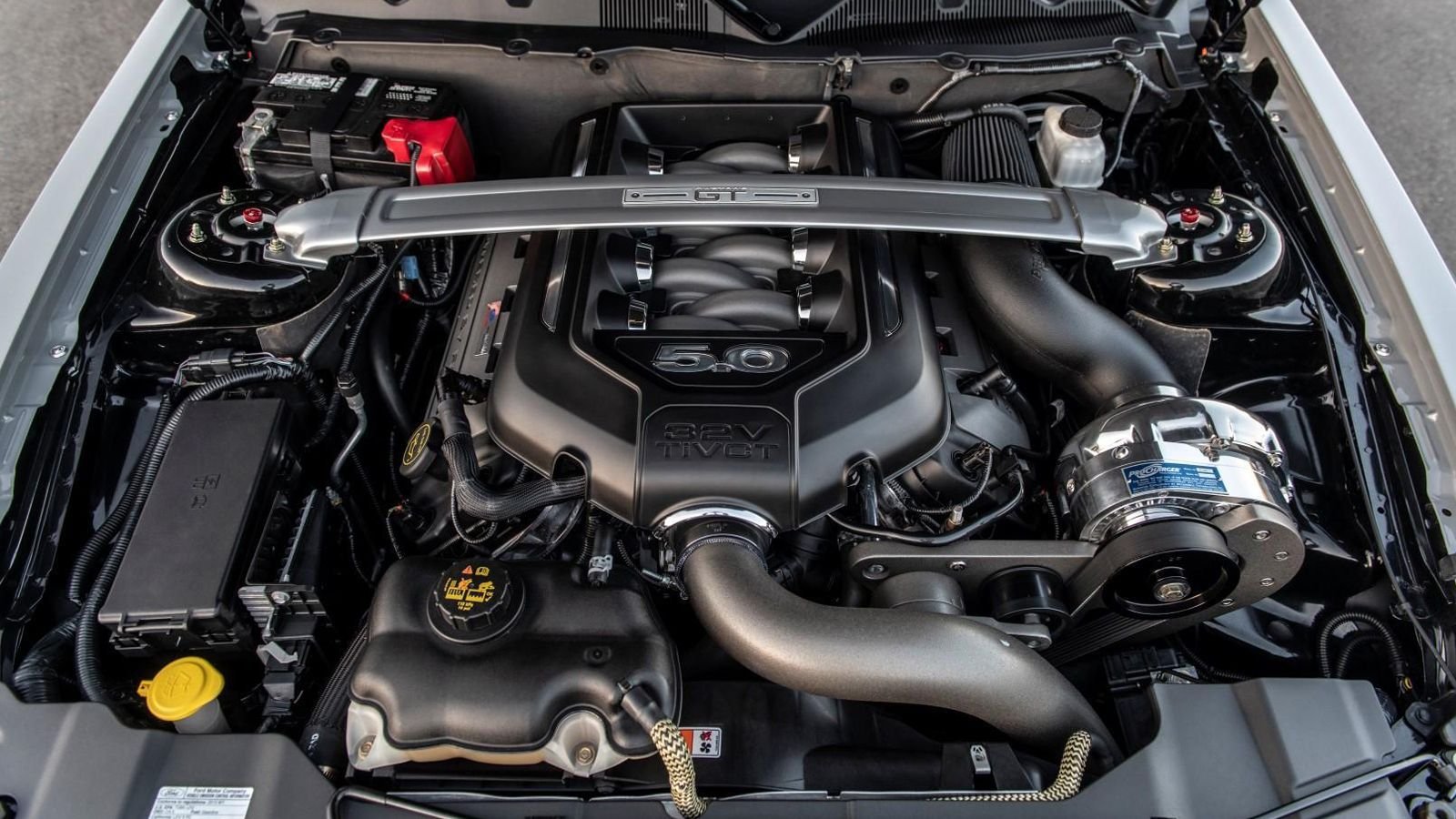 The 2012 SEMA build's Coyote V8 was aided by a Procharger blower. Since the completion of the build, the owner has replaced the Coyote with a 5.0-liter Aluminator V8. The supercharger remains in place, as do the intercooler, Flowmaster headers, and Flowmaster GT cat-back exhaust system, adding up to 507 horsepower and 440 lb-ft of torque on the dyno.