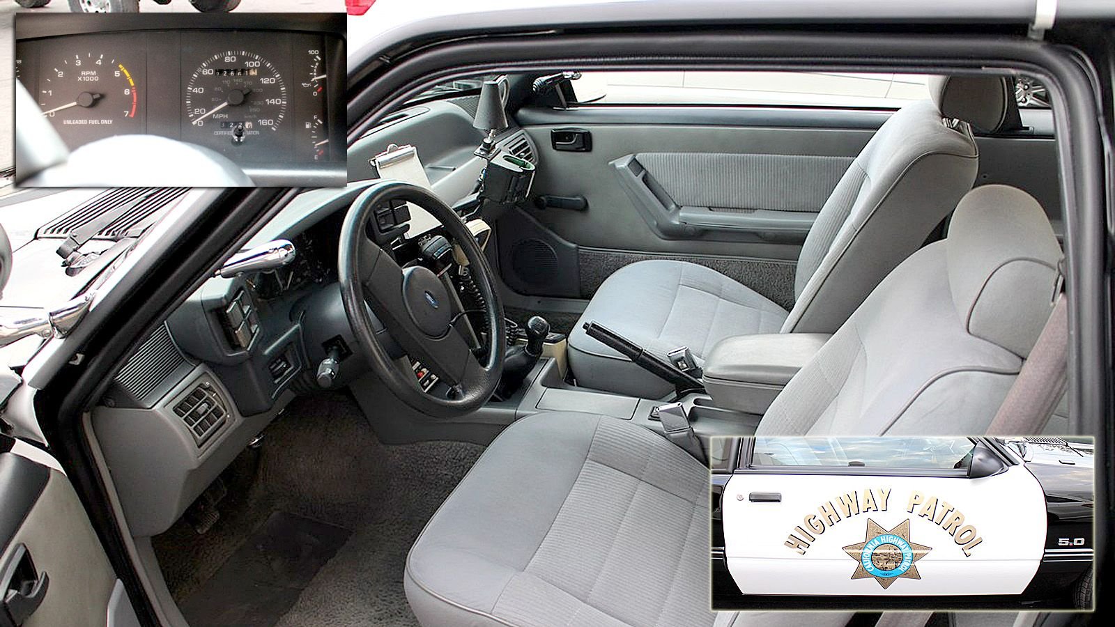 Police cruisers—then, as now—are, by and large, exactly that: large cruisers. Sure, Ford’s EcoBoost-powered Explorer and Taurus PPVs are decent performers—especially considering they’re precincts-on-wheels—but many departments rely on vehicles like the Dodge Charger for “traffic duty.” Back in the day, if you wanted a smaller and speedier mount versus the typical law enforcement lummox, it was to the Fox-body Ford Mustang you’d turn (Camaros of the day were infamous for their terrible engines). And turn the California Highway Patrol did, developing with Ford the law-enforcement-only Special Service Package, which is chock full of expected non-civilian features, and a few—like a five-speed manual transmission—you’d think the CHP wouldn’t want. And yet…