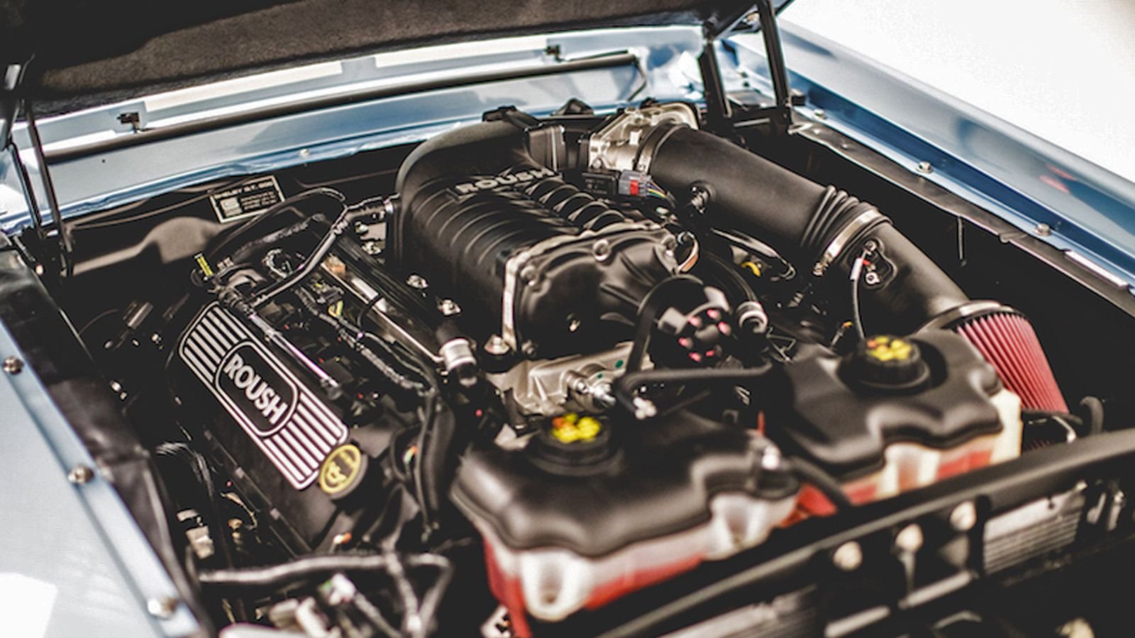 Our Florida-based builders have equipped the GT500 with a supercharged 5-liter Ti-VCT V8 engine by Roush Performance. Derived from Ford's own Coyote engine, with the help of forced induction, the motor can produce 600HP and 476lb-ft of torque. Alterations to the driveline were made as well. 35 spline rear axles and a 1350 yoke help bring the massive power down to the pavement. And deceleration duties fall on the shoulders of a superb braking system, with six-piston forged aluminum calipers clamp 13.08" slotted and vented rotors in the front, and four-piston forged aluminum calipers with 13" rotors at the back.