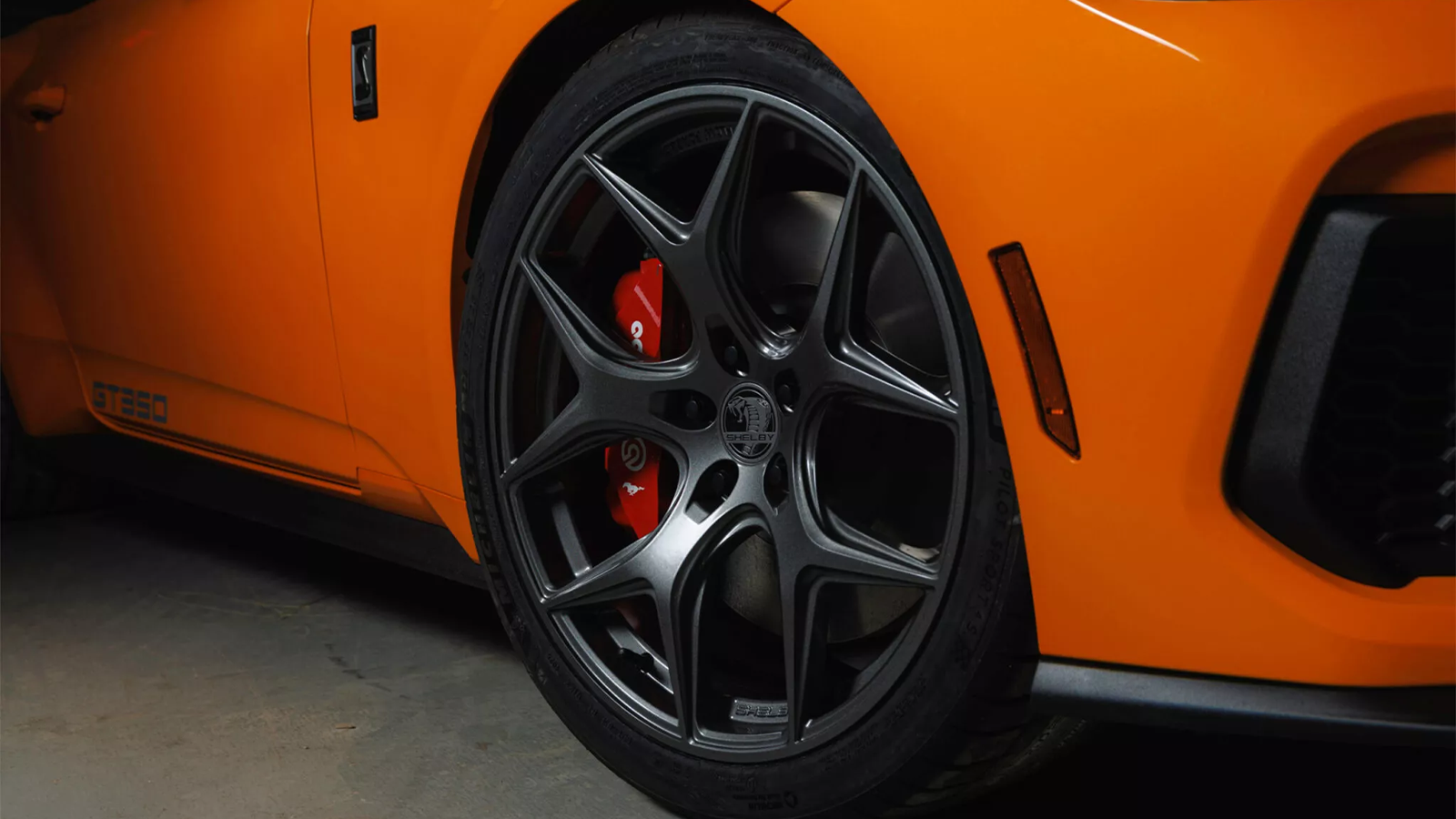 Shelby has made meaningful mechanical changes to ensure the convertible can handle its added performance. The GT350 Convertible receives lowering springs, revised sway bars, caster-camber plates, and a Borla cat-back exhaust system. Rolling stock consists of 20-inch forged alloy wheels designed to reduce unsprung weight, helping preserve handling precision despite the loss of a fixed roof.