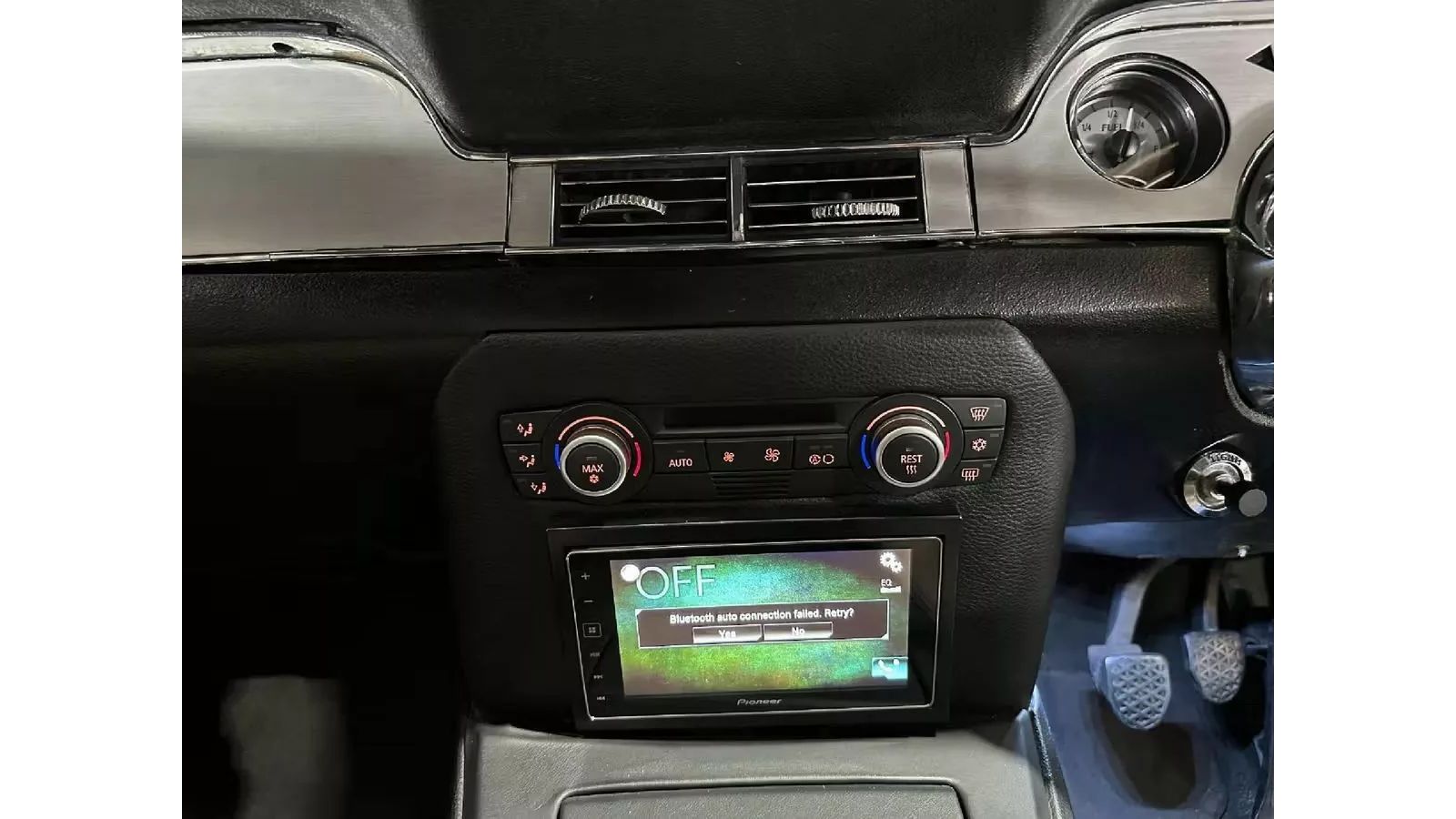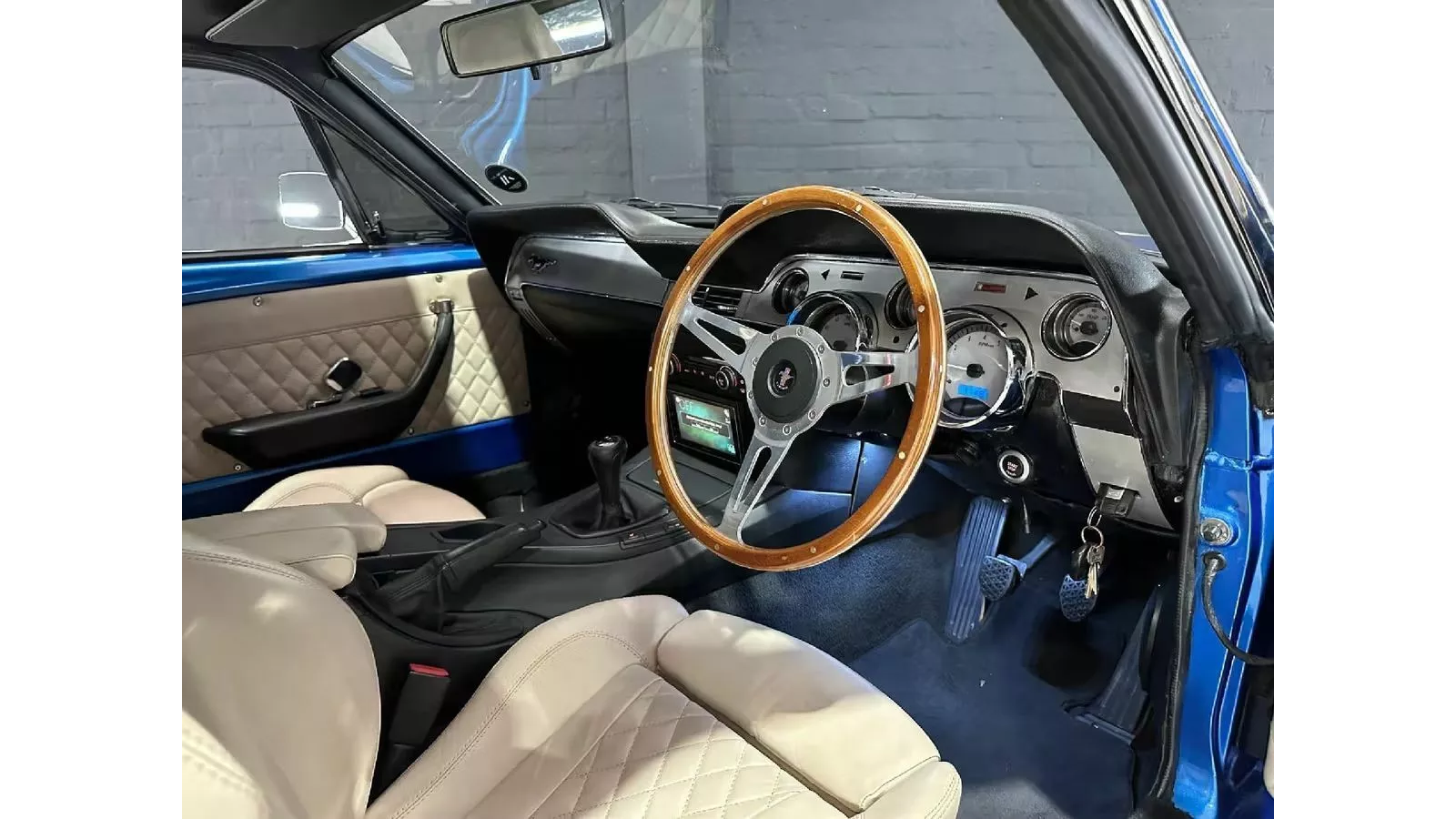 Inside the cabin, the builder has worked to maintain a balance between Mustang nostalgia and BMW modernity. The dashboard and steering wheel lean toward the vintage Mustang look, with wood accents and a classic design. However, you’ll still find BMW essentials like the dual-zone climate control interface, original M3 seats (now reupholstered in quilted leather), and a modern touchscreen. The blend of old and new creates an odd, yet charming, interior that stands apart from conventional restomods.