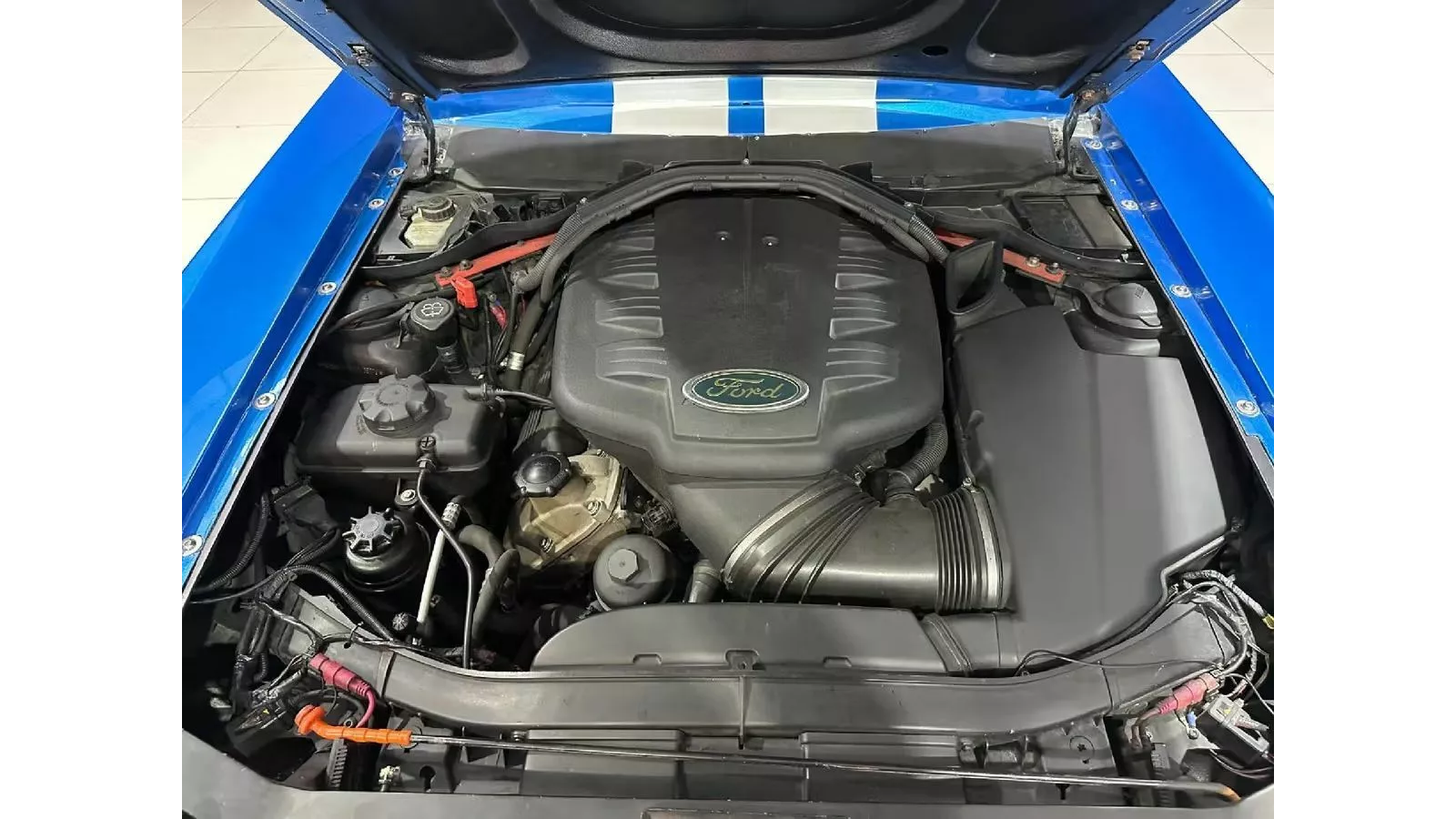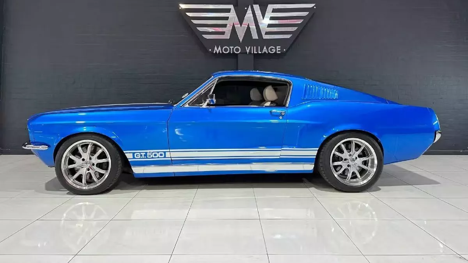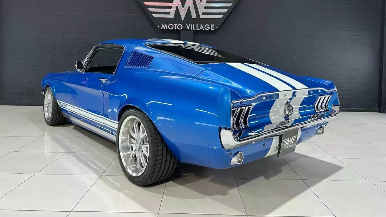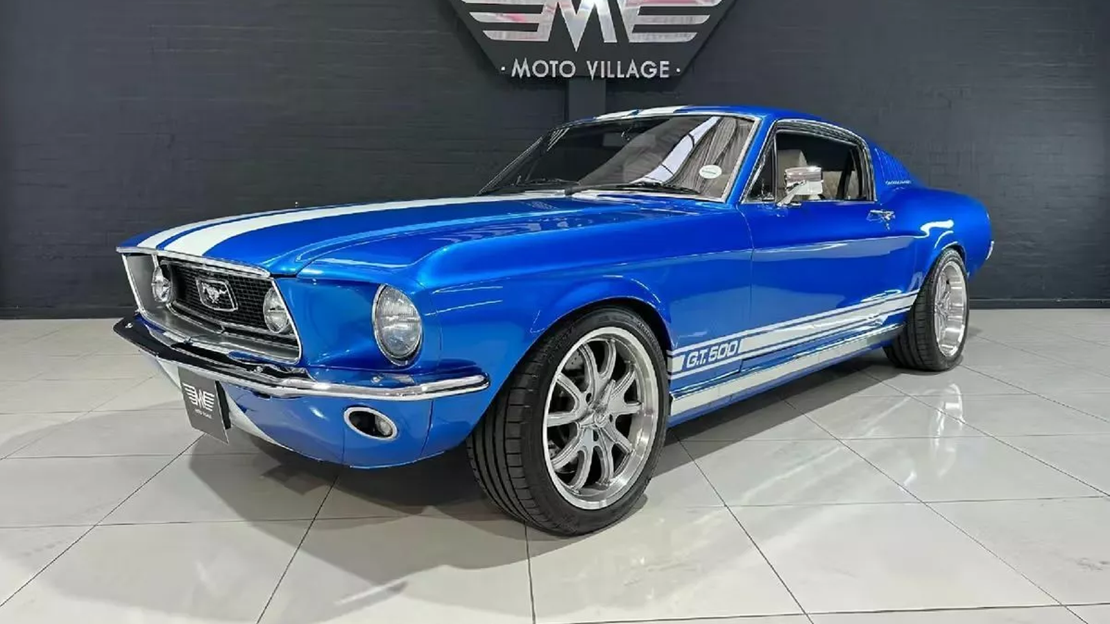 What makes this build stand out, however, is the Mustang shell wrapped around the German performance car. The car is finished in bright blue with silver wheels and unmistakable GT500-inspired body panels that give it the look of a classic American muscle car, though it’s far from authentic.