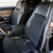 Power is sent through a four-speed manual transmission, paired with a McLeod twin-disc clutch and a carbon-fiber driveshaft. At the rear sits a Traction-Lok differential with 4.11:1 gears and 35-spline axles. Calvert Racing springs and Mickey Thompson drag radials hint at the car’s quarter-mile intentions, while braking remains vintage in character with front discs and rear drums.
