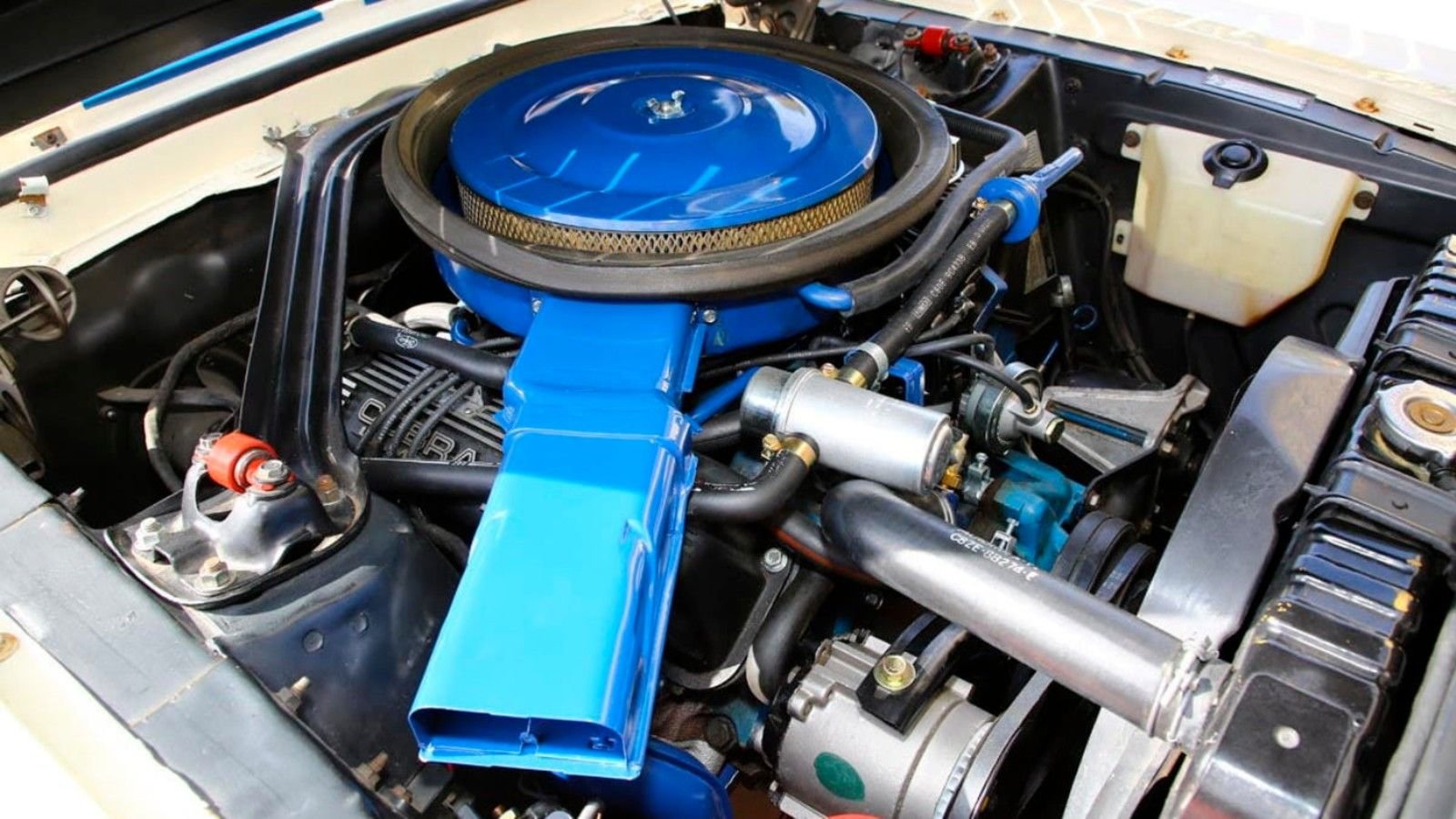 Propelling this Mustang is a very cherry 428 ci Cobra Jet engine. All of this unit's power runs through an old school 4-speed manual transmission.