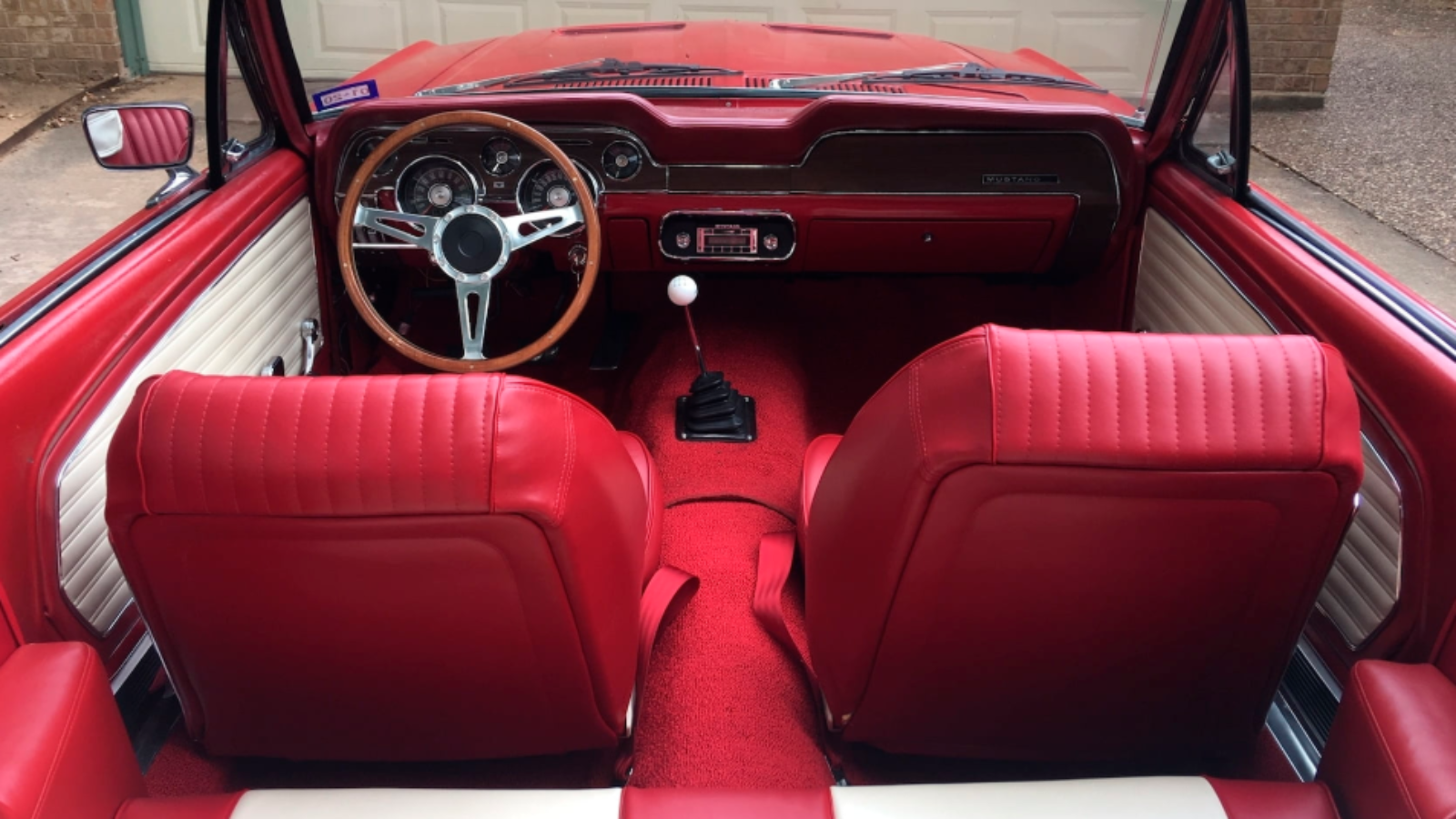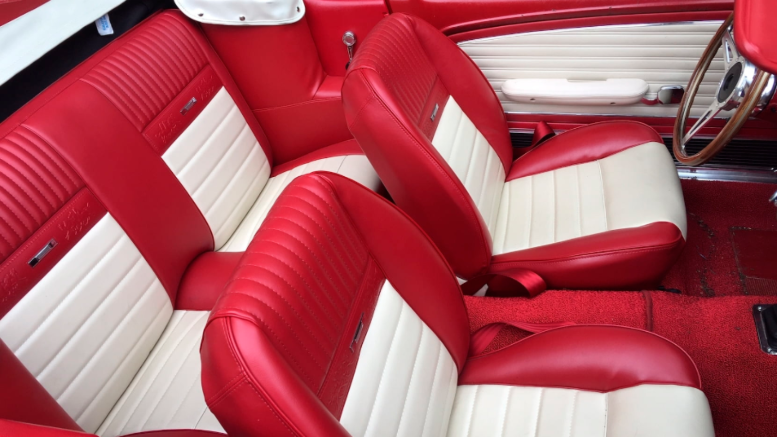 The white on red paint job will always look spectacular on a classic Mustang. And, once the top is down, you can see that this color scheme is carried right the way through the interior. This model screams classic 60's style.