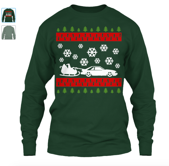 With the ugly sweater trend at peak wave, this long sleeve t-shirt look-alike offers the Christmas appeal without having to scratch your neck and look like a crack fiend every time you wear it.