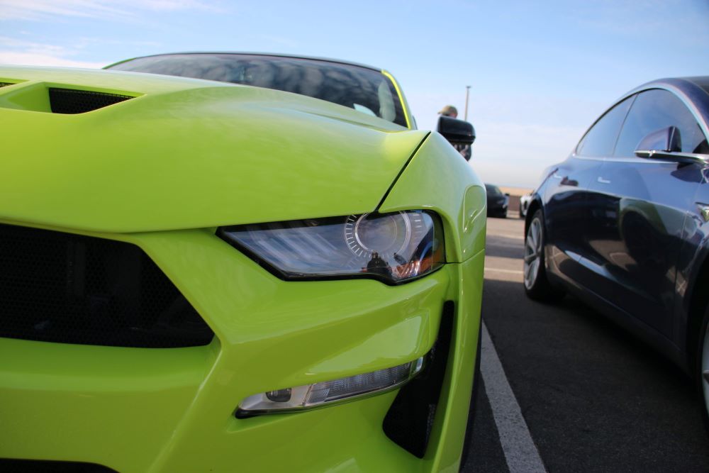 Peregrine’s Mustang Revenge GT stands out from a crowded beach lot thanks to its custom carbon-fiber body.