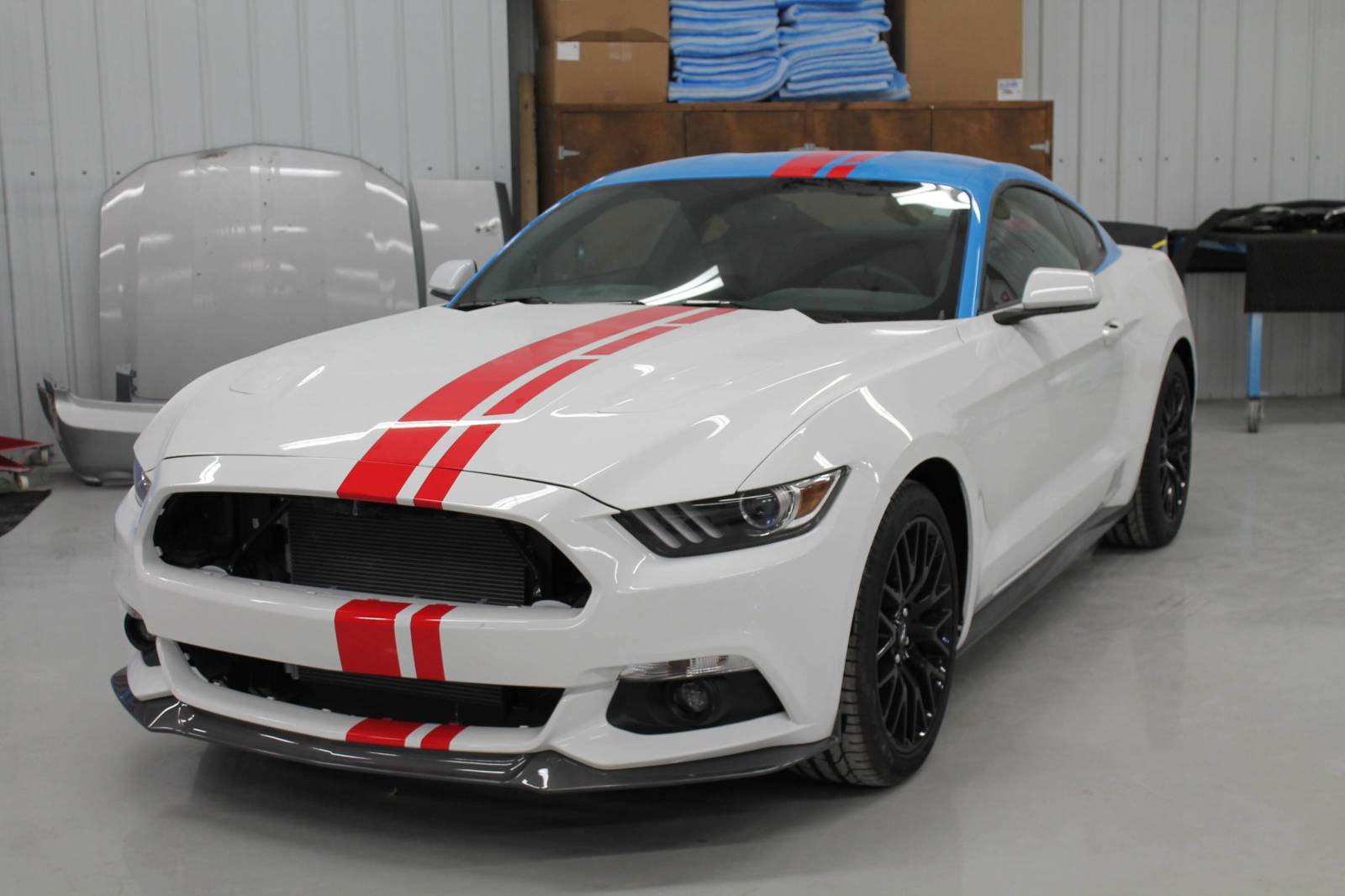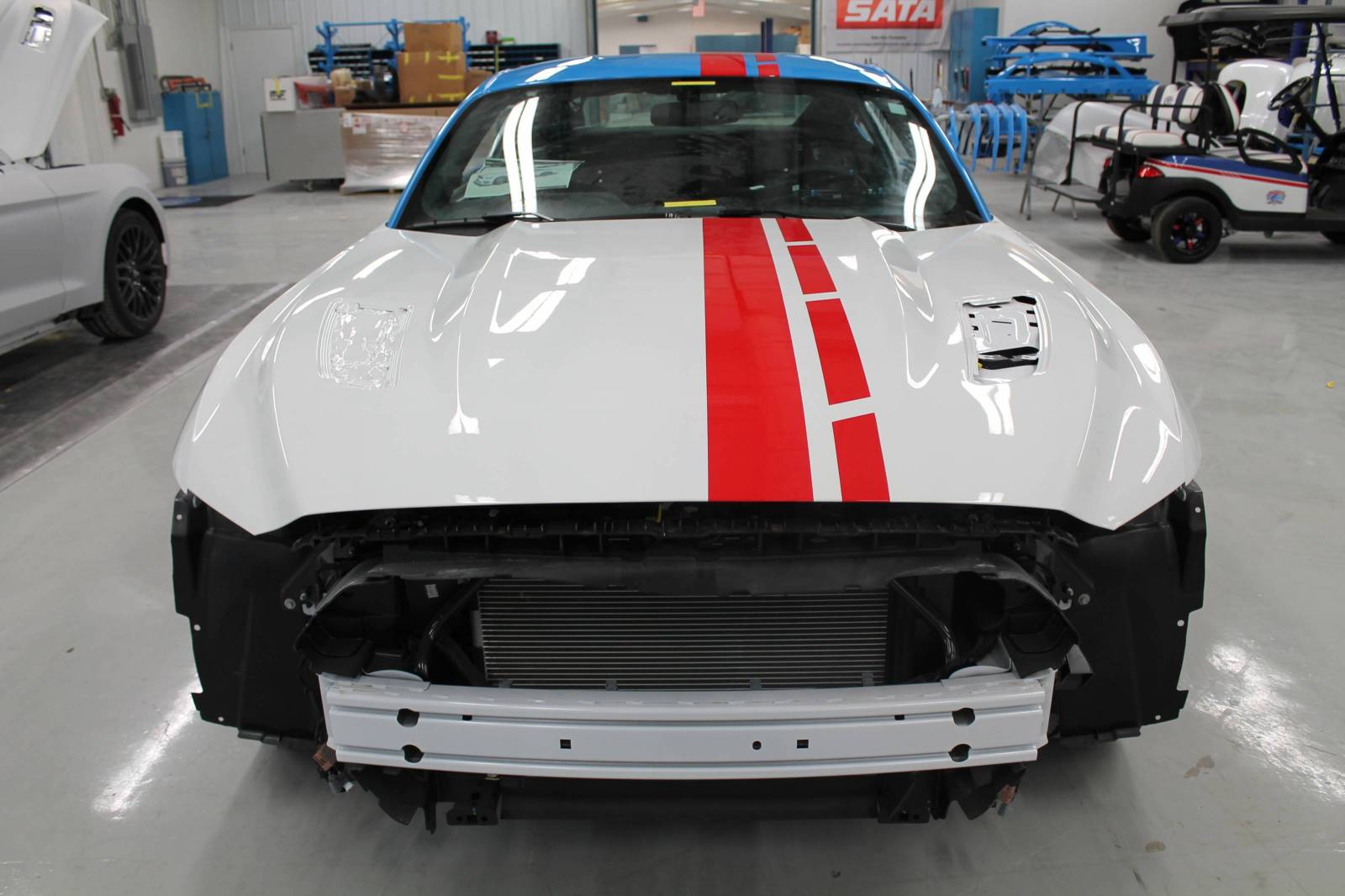 The custom, high-powered Petty creation will also include custom wheels, tires, brake calipers, and interior with Petty-Blue stitching. In addition, the Mustang from Petty’s Garage will feature custom fabrication and a custom front grill, along with a number of other one-off parts.