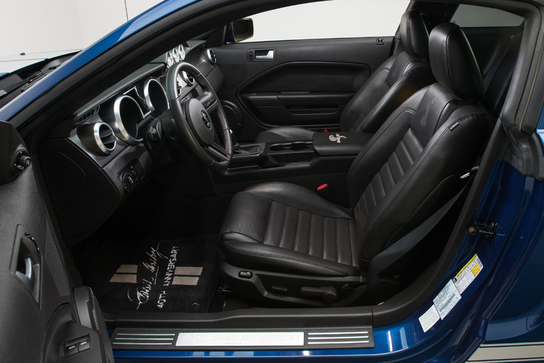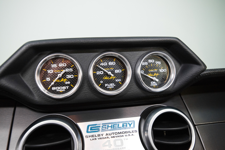 Inside, it’s all classic Shelby with a modern touch, including Cobra insignias, a programmable “SVT” shift light, and 40th Anniversary sill plates.