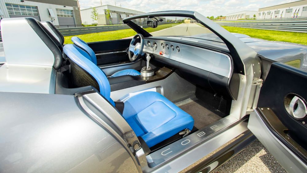 Thanks to that layout and a body made from double-wall fiberglass construction with a foam core, aluminum A-pillars, bumperettes with carbon fiber splitters, rockers, and rear diffuser, the Cobra Concept boasts a perfect 50/50 weight distribution. It also coddles the driver and passenger with a gorgeous-looking cabin filled with premium materials and more legroom than a Crown Victoria, surprisingly.