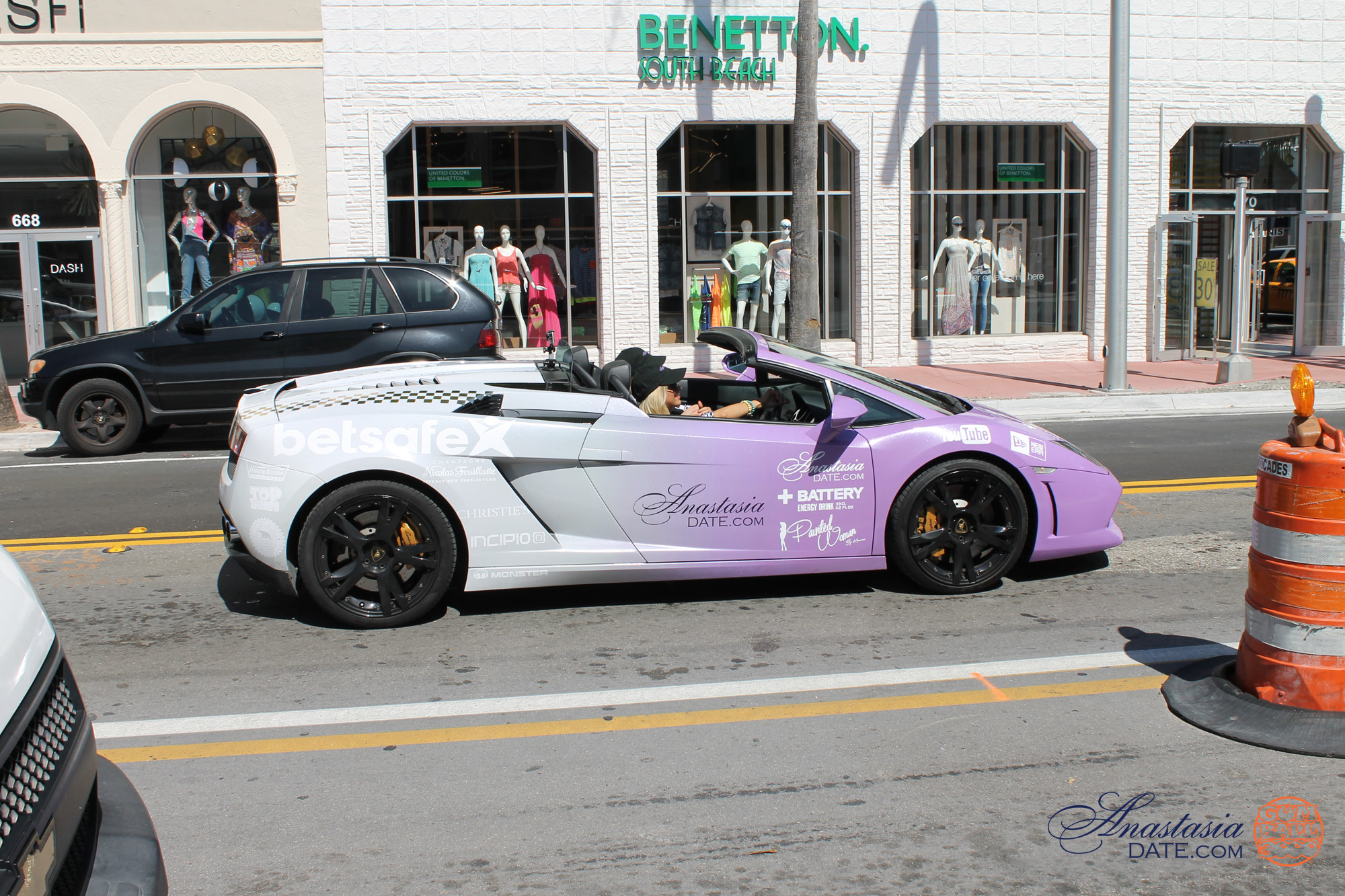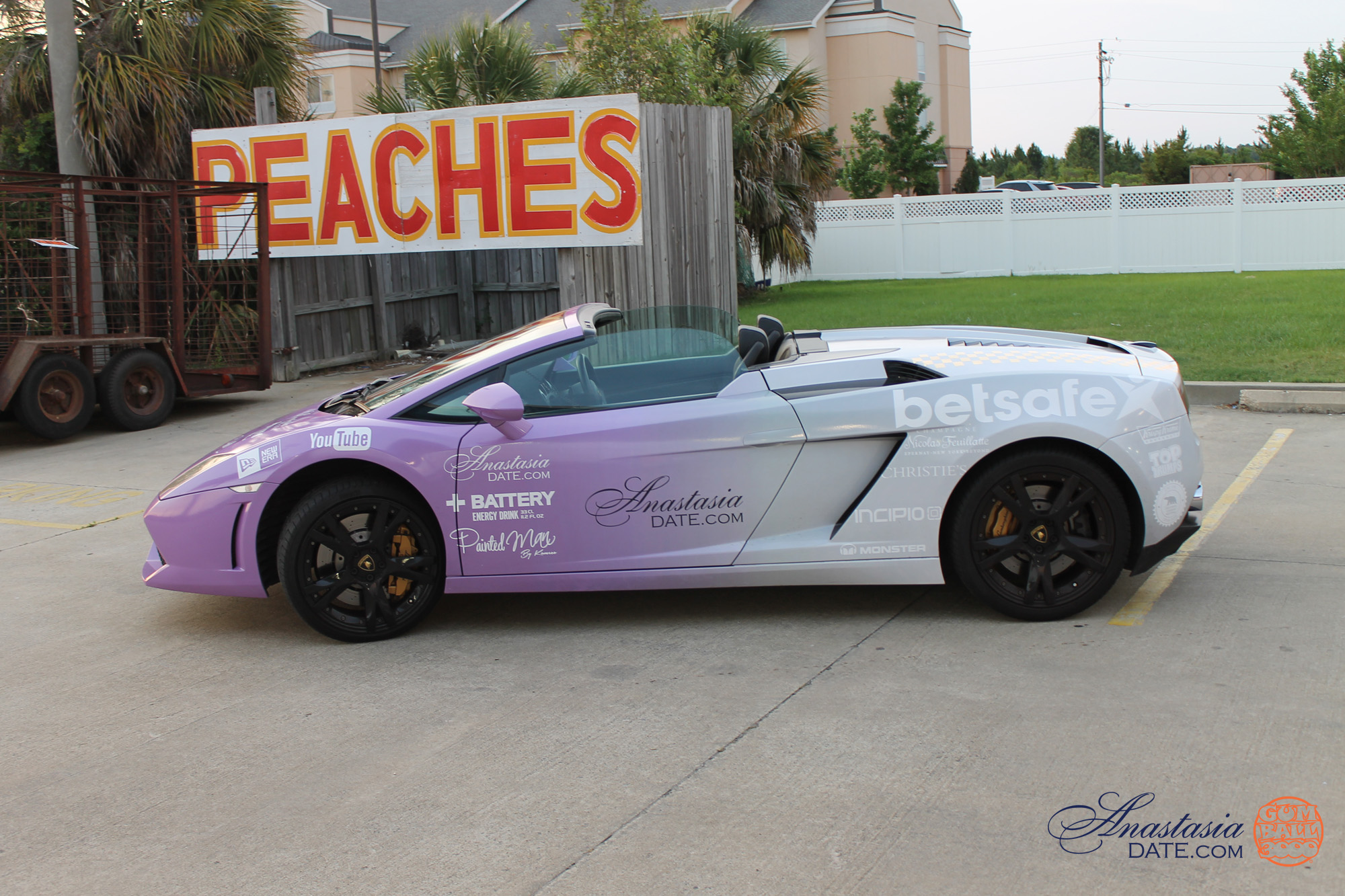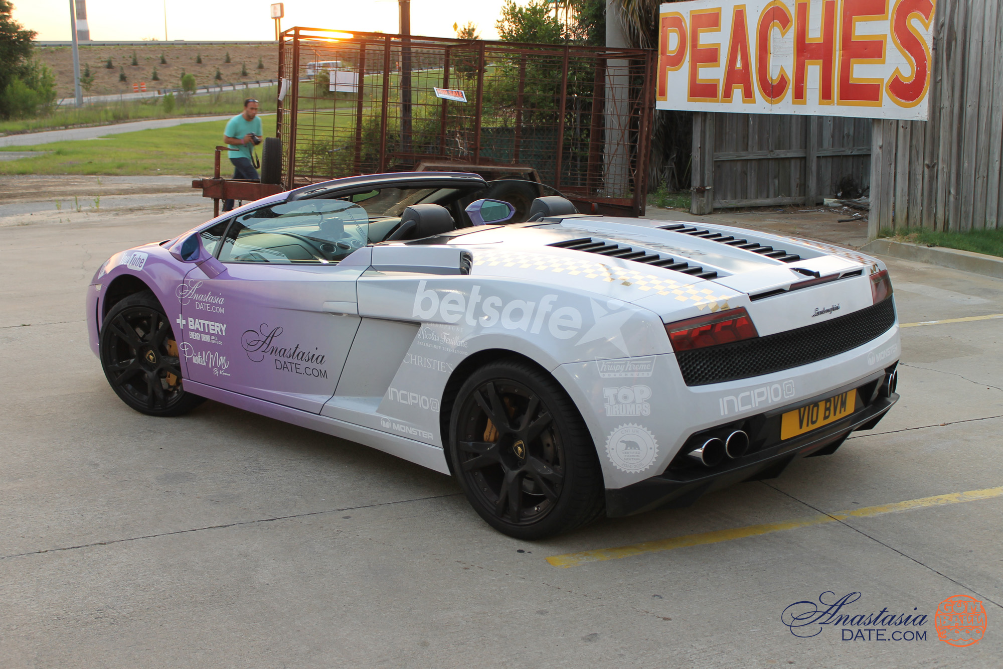 Fortunately, none of Team AnastasiaDate.com’s forays into the far-north region of the speedometer resulted in any unwanted attention from the local authorities, but everywhere we stopped for gas drew a crowd. In Miami, Lamborghinis are almost a dime a dozen. Hardware-wise, even the famed streets of Los Angeles pale in comparison to the richness of South Beach, but in the middle of the Georgia sticks? A purple Lamborghini and two drop-dead gorgeous Russian girls draw a crowd like free beer at a frat party. The picture below will give you an idea of the kind of attention we got when we stopped.