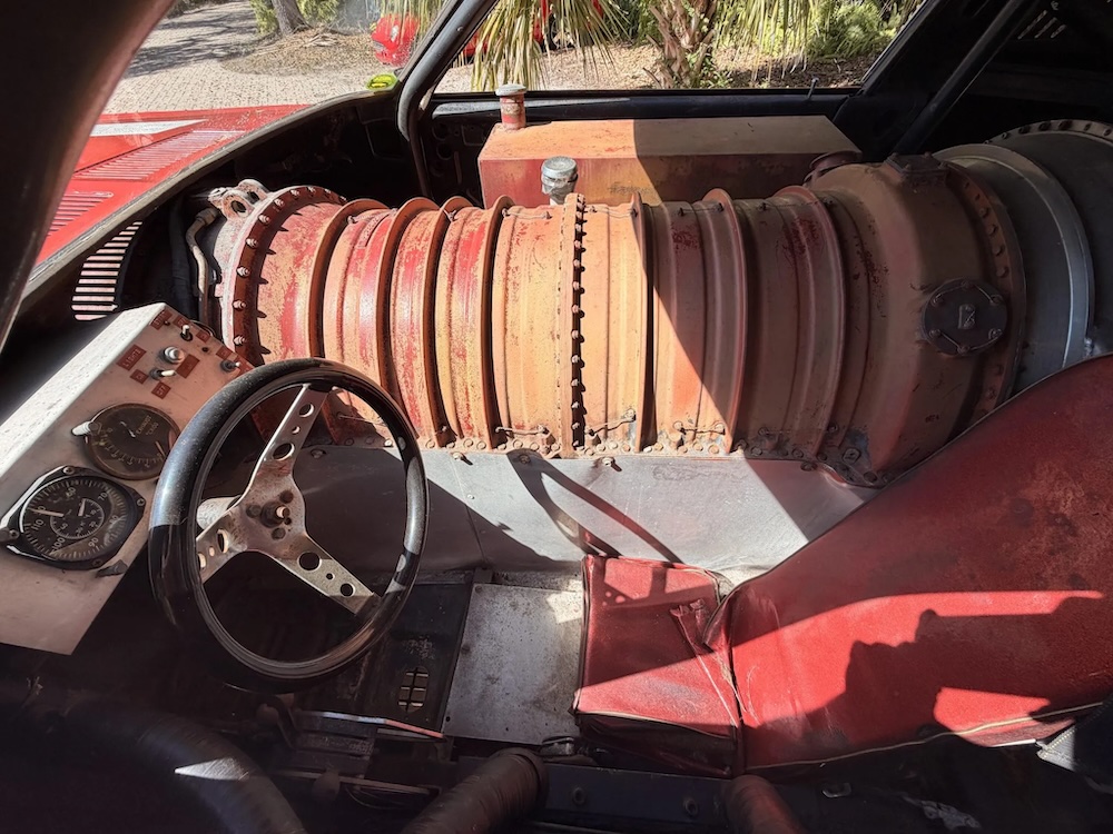 In any event, it’ll take a brave soul to propel this beast down the drag strip, as is evident when one peeks inside the cabin. There, the passenger seat has been replaced by the turbine, which protrudes into the cabin and takes up residence next to the driver. They’re at least surrounded by a roll cage and held in place by a harness, but the fuel tank is also sitting nearby. Notably, the throttle controls are believed to have come from a boat.