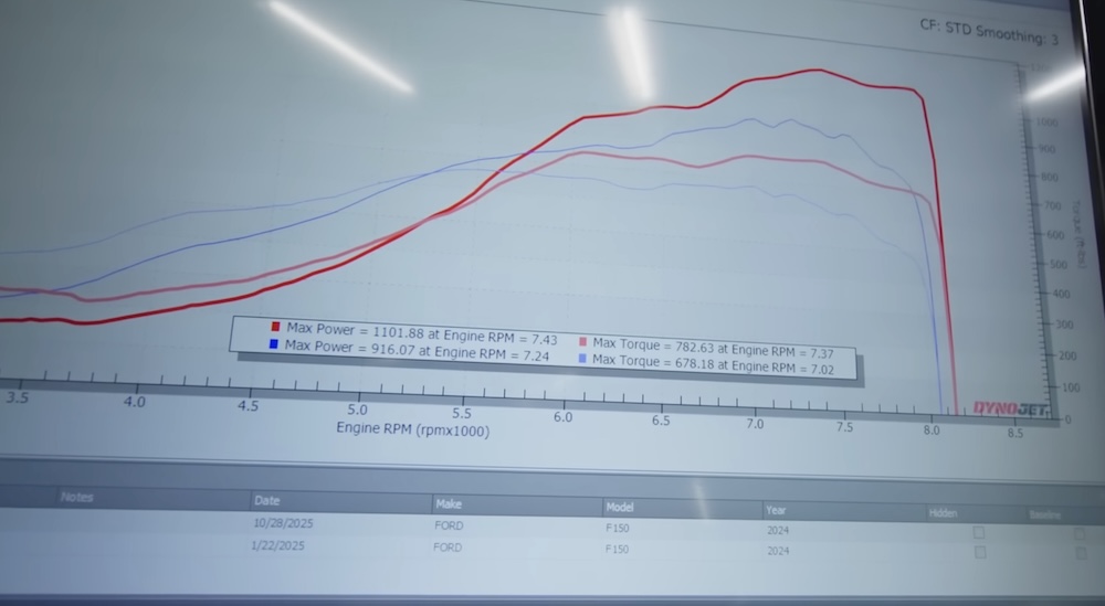 Ultimately, this Ford F-150 records an eye-opening 1,101 horsepower and 782 pound-feet at the wheels with a bit of tweaking, a truly impressive result for not only the combination itself, but the new PlasmaMan intake is clearly a solid upgrade for folks looking to get the most out of their boosted pickups.