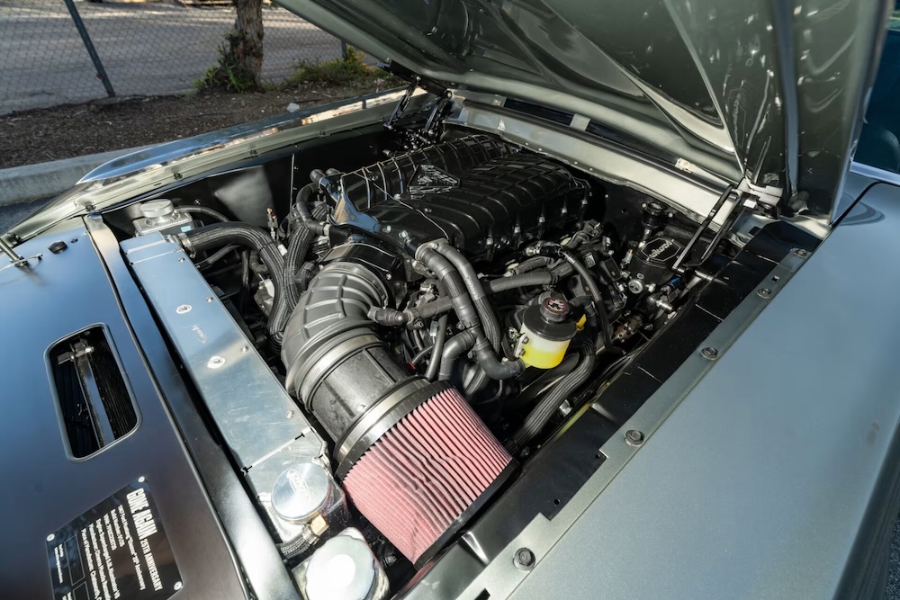 One will also find 25th Anniversary badging throughout the exterior, which extends to the inside as well. Inside, the Mustang Eleanor Gone Again features a deluxe interior with lots of stainless and brushed aluminum trim, power windows with a hand crank control, power locks, Vintage Air A/C, a wooden steering wheel, and of course, the famous “Go Baby Go” button present on the shifter.
